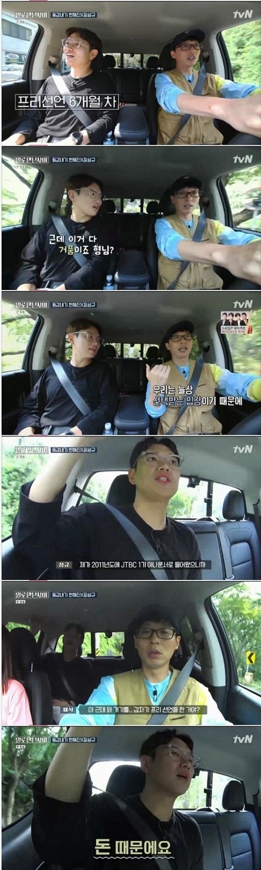 방송에서 장성규는 방송인 유재석의 차량에 탑승했다.