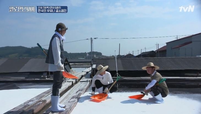 세 명의 일꾼들은 소금 거둬내기부터, 이물질 골라내기, 소금 산 만들기, 소금 옮겨담기, 소금카트 운반하기, 보관창고에 소금 쌓기, 포대에 포장하기까지 역대 ‘일로 만난 사이’ 중 가장 강도 높은 노동에 투입됐다.