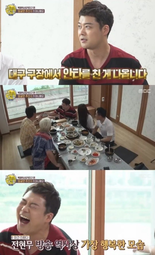 그의 안타 영상을 본 박찬호는 “야구 좀 하는 스윙이다. 야구 좀 하는데?”라며 그의 실력을 인정했고, 전현무는 뿌듯한 듯 기쁨을 감추지 못했다.