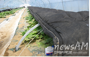 보온덮개 자동개폐기는 전기모터가 기어를 작동하게 해 폭 3m, 길이 100m의 소형터널 3동을 동시에 열고 닫을 수 있으며 타이머를 부착하면 정해진 시간에 자동으로 열리고 닫히기 때문에 열고 닫는데 노동력이 전혀 들어가지 않는 것이 특징이다. 또한 사람 손으로 보온덮개를 열고 닫는데 10a당 60분이 소요됐으나 자동개폐기는 10분이 소요됐다. 특히 하우스 내 지면과 보온덮개가 잘 밀착돼 보온효과도 좋고 외부기온이 영하 12℃일 때 소형터널 안의 온도는 영상 6℃를 유지해 보온력도 우수한 것으로 나타났다. 개발 자동개폐기는 구조가 간단하고 사용이 편리하게 제작돼 원하는 시간에 보온덮개를 열고 닫을 수가 있으며, 랙기어에서 랙과 모터를 동시에 이동하며 보온덮개를 개폐하는 특징을 가지고 있다. 자동개폐기 설치비는 10a에 1000만원 정도로 현재 사용하고 있는 예인식에 비해 저렴하다. 유인줄이 없기 때문에 하우스내 작업이 편리하고 노지에서도 사용 가능한 장점이 있다. 기어의 방향이 지면을 향해 있어 보온덮개를 감아올리거나 풀어 내릴 필요가 없고 손상될 염려도 없으며 연결 체인도 불필요하다. |
