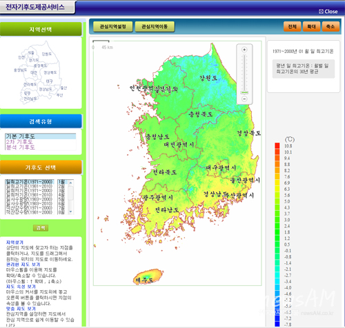 농림수산식품기술기획평가원에 따르면 농림기술개발사업 R&D과제의 일환으로 2006년부터 4년간 총 10억원의 연구개발비를 지원받은 경희대학교 연구팀이 30m 고해상도 디지털 국지기후도 제작에 성공했다고 밝혔다. 평가원은 그 동안은 농업기후 필요 지역마다 정확하고 구체적인 자료가 제공되지 못해 농작물 재배 농가가 기후를 예측하는 데 어려움 있었지만 이번 기후도의 제작으로 재배적지 선택 기준을 제시하고 안정적 농산물 생산 및 공급의 토대를 마련하게 됐다고 덧붙였다. 특히 기존 기후지대 구분에 쓰이는 기상청의 종관기후자료는 인구밀도가 높은 도시지역과 해안 평야지대에 편중되어 있어 농작물 재배현장에 대한 지역별 국지기후를 제공하는 데에는 한계가 있었다. 경희대 연구팀이 제작한 기후도는 이렇게 듬성듬성한 종관기후자료에 국지적인 지형, 고도, 도시 열섬효과, 바다의 영향 등을 추가함으로써 남한 전역에 대해 보다 정확하고 세밀한 농업기후 자료를 제작했다. 전자기후도는 한번 심으면 10년 이상 교체할 수 없는 과수 등 영년생 작목의 재배적지 선택에 가장 유용할 것으로 보이며, 기존 작목을 대체하거나 품종을 갱신하는 경우에도 좋은 길잡이가 될 것으로 기대되고 있다. 특히 시범지역인 충남 예산군과 국립공원 지리산 지역의 경우 주 작물에 대해 동해위험도, 휴면해제일, 개화일, 품질지수, 병충해 발생 등 영농활용정보가 필지별로 제공돼 바로 영농계획에 활용할 수 있게 됐다. 전자기후도 정보는 (재)국가농림기상센터 홈페이지(www.ncam.kr)를 통해 제공되고 있다. |