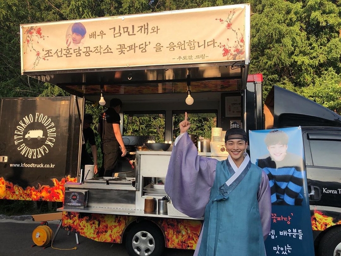 사진 속 김민재는 간식차 앞에서 환하게 웃고 있다.