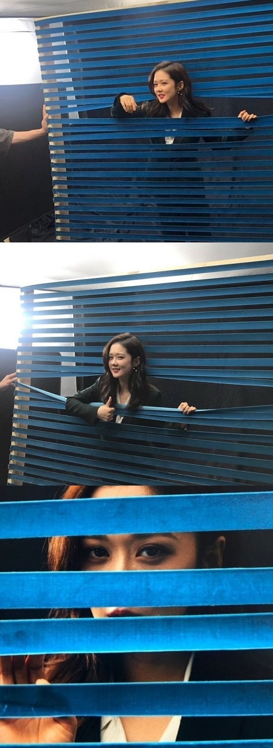 공유된 사진에는 블라인드 사이로 상체를 내밀고 있는 장나라가 있다.