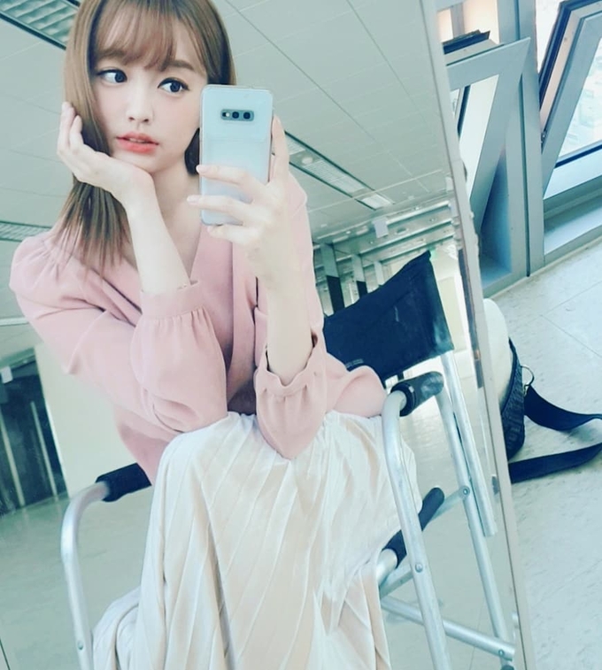 23일 강아랑은 자신의 인스타그램을 통해 의자에 앉아서 거울 셀카를 찍고 있는 사진을 게재했다.