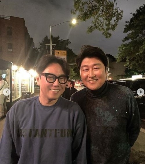 공개된 사진 속 윤종신은 배우 송강호와 인증샷을 남기고 있다.