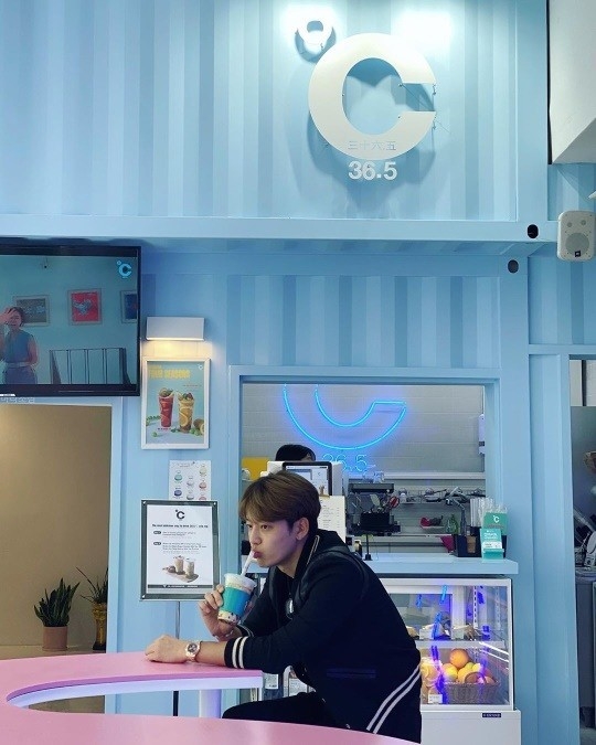 사진 속 세븐은 카페에서 여유로운 시간을 보내고 있다.
