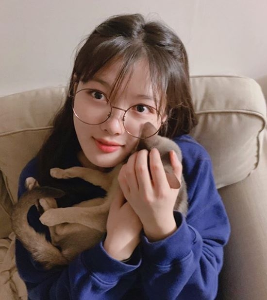 공유된 사진 속 김유정은 고양이를 품에 안은 채 카메라를 보고 있다.