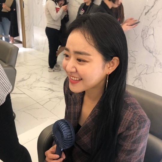 사진 속 문근영은 활짝 웃으며 메이크업을 수정하였다.