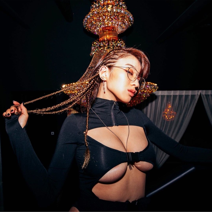 김우현은 자신의 인스타그램에 게재한 사진에서 섹시한 의상을 입고 매력을 뽐내고 있다.