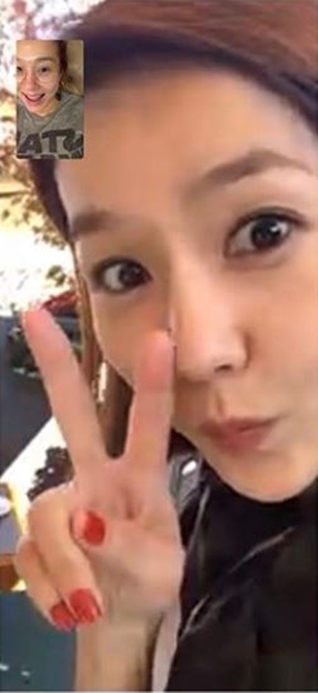 공개된 사진 속에는 영상 통화 중인 핑클 출신 이진과 옥주현 모습이 담겼다.