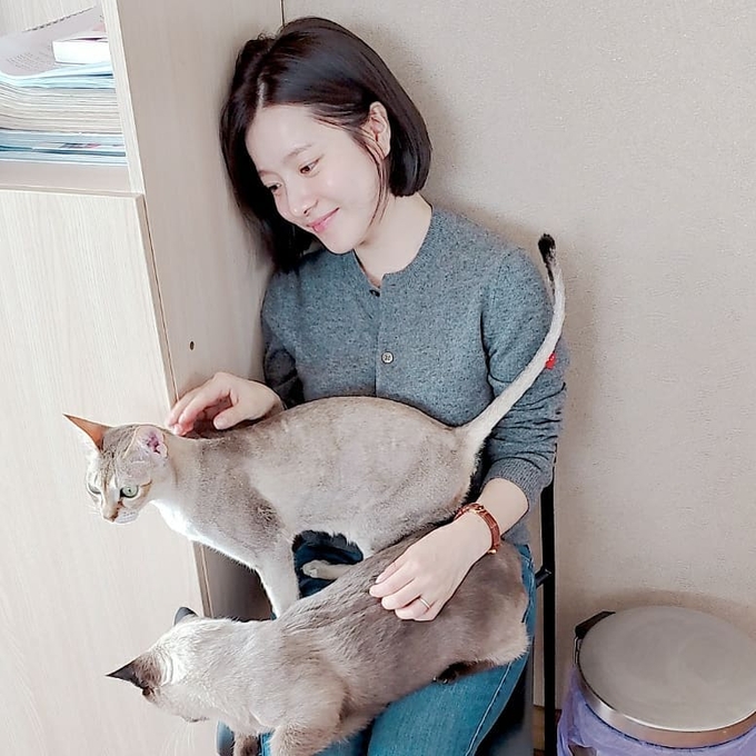 공개된 사진 속 벤은 자신의 무릎 위에 두 마리의 고양이를 올려두고 있다.