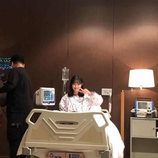 공개된 사진 속 김혜윤은 병원 침대 위에서 브이자를 그리며 미소를 짓고 있는 모습이다.
