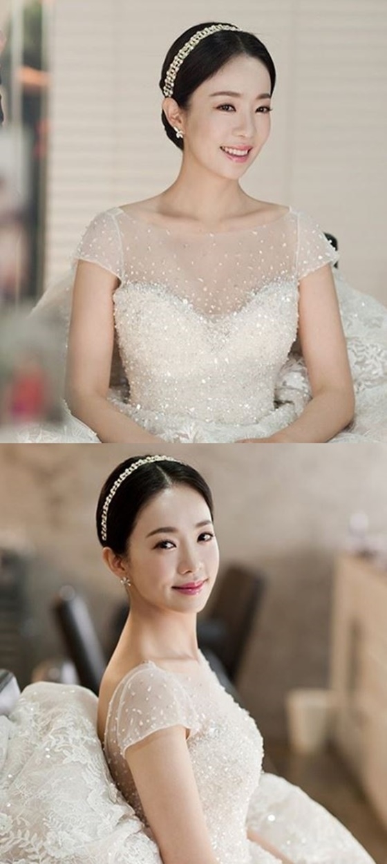 공개된 사진 속 박은영은 웨딩드레스를 입고 환한 미소를 지으며 카메라를 바라보고 있는 모습이다.