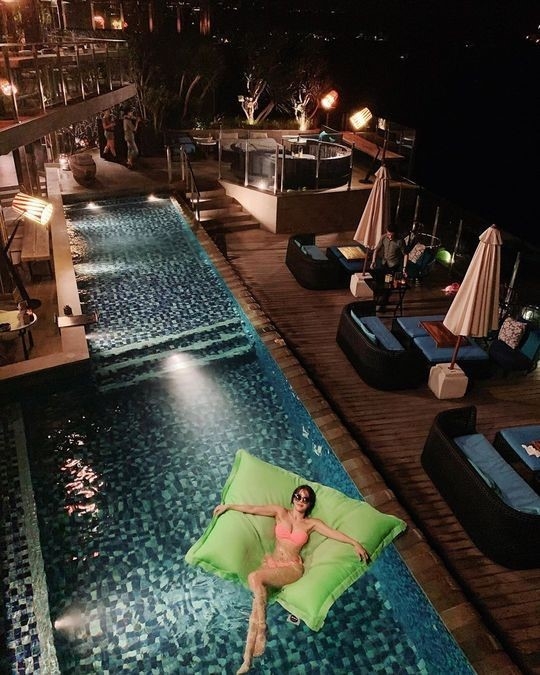 미나는 사진과 함께 "씨푸드 먹고 리조트로 돌아와서 루프탑바"라고 덧붙였다.
