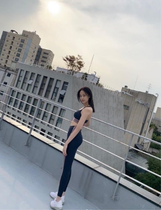 공개된 사진 속 이주연은 몸매가 드러나는 운동복을 입고 카메라를 보며 포즈를 취하고 있는 모습이다.
