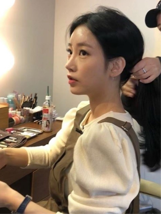 공개된 사진 속 소연은 헤어스타일을 손질 받고 있는 모습이다.