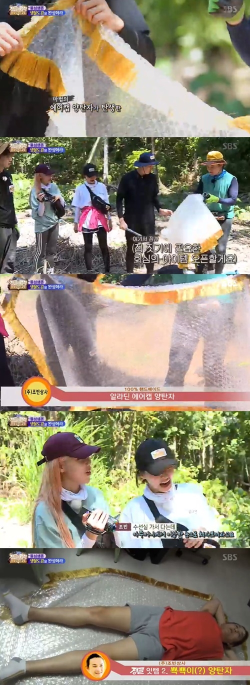 조빈은 양탄자 에어캡을 꺼내 모두의 이목을 사로잡았다.