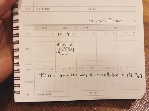 공개된 사진은 차범근이 손녀의 점심식사와 수면에 대해 적어놓은 메모이다.