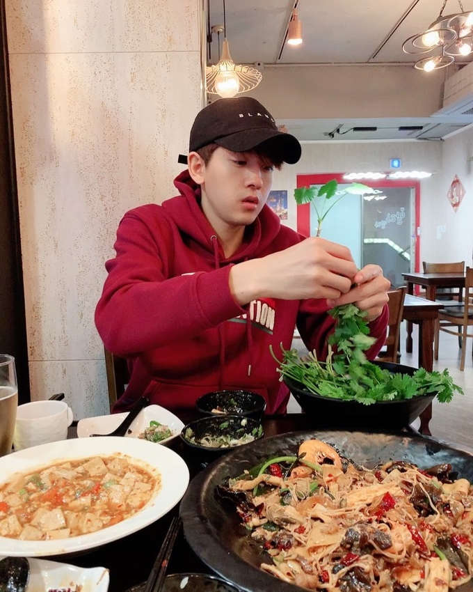 지난 30일 류필립이 SNS에 고수를 먹고 있는 새로운 사진을 게제했다.