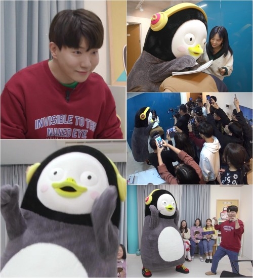 먼저 공개된 사진 속 펭수가 수많은 제작진에게 둘러싸여 막내딸 안유진에게 싸인을 해주고 있어 시선을 모은다.