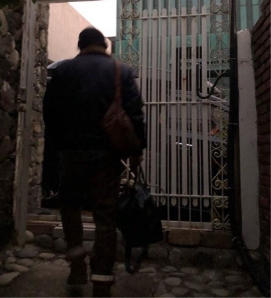 공개된 사진 속 윤종신을 대문 밖을 나가고 있는 모습이다.