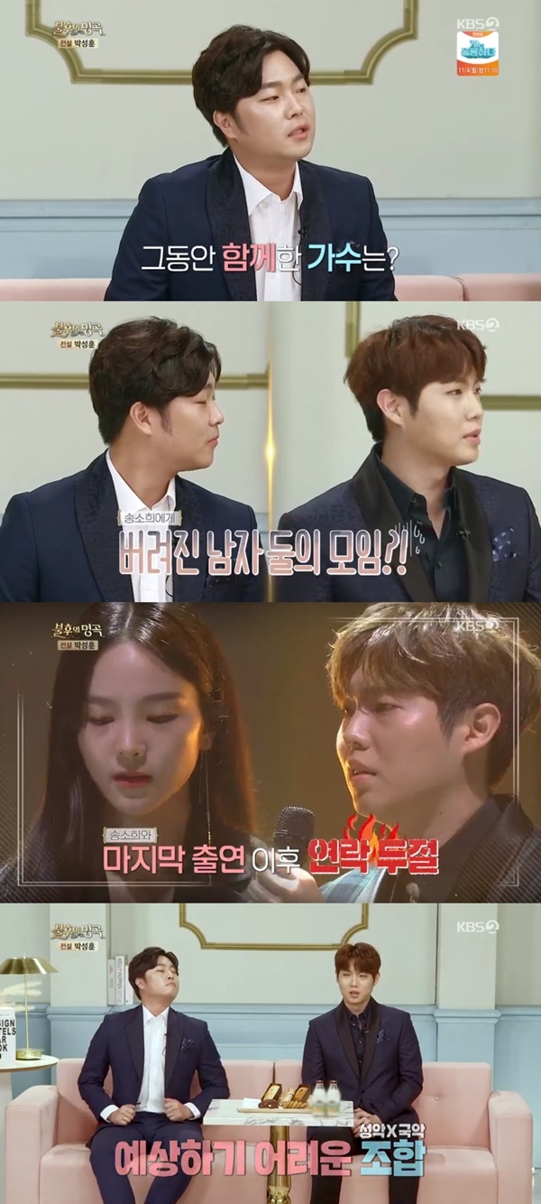 손태진은 "제작진이 국악과 성악의 만남이라고 고영열과의 컬래버를 추천했다"며 "그런데 곰곰이 생각하니 송소희에게 버려진 남자 둘이었다"고 전했다.