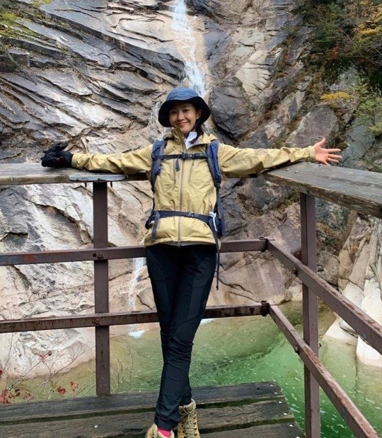 공개된 사진 속 유리는 산을 찾은 모습이다.