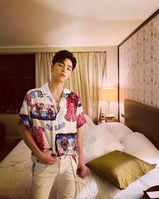 공개된 사진 속 구준회는 눈에 띄는 화려한 셔츠를 입고 호텔방에서 포즈를 취하고 있는 모습이다.