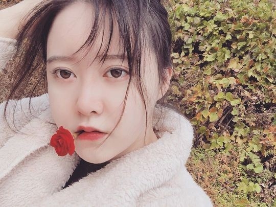 사진 속 구혜선은 붉은 꽃을 입에 물고 카메라를 바라보고 있다.