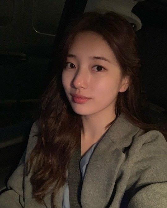 공개된 사진 속 수지는 카메라를 응시하며 사진을 찍고 있다.