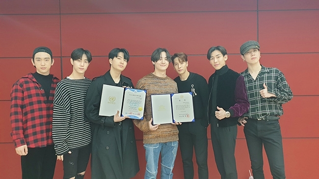 GOT7은 사회 공헌활동에 적극 참여해 따뜻한 나눔 문화 확산에 기여한 공을 인정받아 ’대한민국 봉사 대상‘과 ’국회 외교통일위원회 상‘을 받았다.