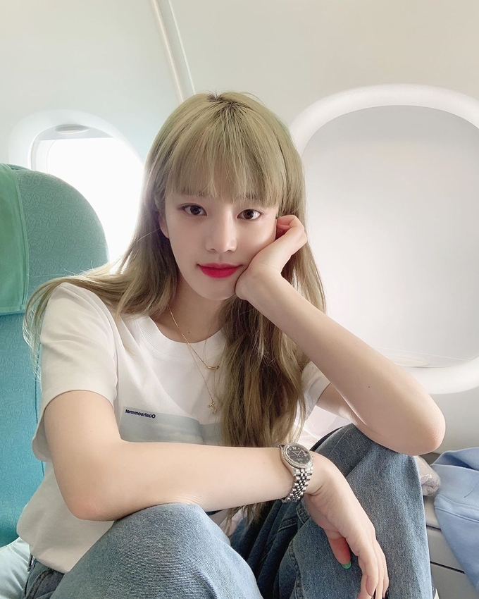 공개된 사진 속 이유비는 흰색 티셔츠에 청바지를 입고 앉아 있는 모습이다.
