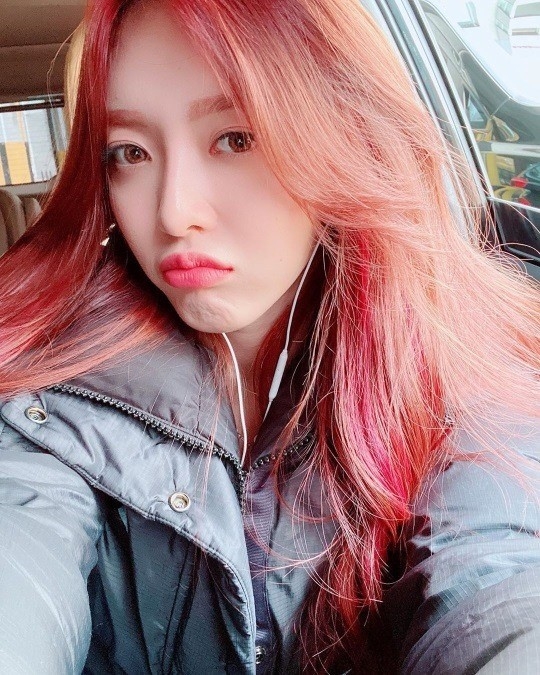 공개된 사진 속 찬미는 붉은 헤어컬러로 변신한 모습이다.