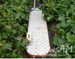 동안 시설 저상작물을 수확하려면 덥고 습한 시설하우스 내에서 오랜 시간 쭈그리고 앉거나 엎드린 자세로 일을 하게 돼 농작업자의 무릎, 발목, 허리 등에 근골격계 질환을일으키고 과도한 피로감을 유발해 질병 발생의 원인이 돼 왔다. 이번에 개발한 전동카는 시설하우스의 좁은 고랑에 레일을 설치해 작업자가 전동카에 앉은 상태에서 작업지점을 자유롭게 앞뒤로 전동 이동하며 저상작물을 수확하고 동시에 수확한 작물을 전동 운반할 수 있다. 특히 높이 12cm 이하, 총 중량 30kg 이하로 제작돼 여성작업자의 관리와 운반이 용이하다. 지난해 곰취 재배농가를 대상으로 현장 평가한 결과, 55m 길이의 곰취 수확 작업시 전동카를 이용하면 작업소요시간을 절반 정도로 줄일 수 있는 것으로 나타났다. 특히 60% 정도의 노동부담 경감효과와 노동력 절감 비용도 991㎡ 기준으로 연간 1000만원에 달하는 것으로 조사됐다. 양순미 농진청 농촌환경자원과 박사는 “이번 전동카 개발은 농업인의 근골격계 질환을 예방하고 농작업의 효율성을 높이는데 큰 도움이 될 것으로 기대한다”며 “농가 보급을 위해 지난 2월 24일 산업체에 기술을 이전했다”고 밝혔다. |