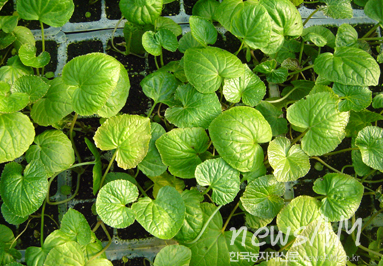 고추냉이는 매콤한 맛의 쌈채로 각광받고 있지만 생육 조건이 까다로워 그간 계절별 온도차가 심한 국내에선 종자 생산에 엄두를 내지 못했다. 도 농업기술원 특화작물 시험장 태백분소에 따르면 하우스 내 온도가 겨울엔 섭씨 5도 이상 여름엔 섭씨 18도 이하가 되도록 환경을 조성해 올해 고추냉이 종자 생산에 성공했다. 하얀 꽃이 피기 시작한 하우스 395㎡내 고추냉이엔 염주형 종자가 주렁주렁 매달리기 시작, 6월엔 수확이 가능한 상태이다. 도 농업기술원 특화작물 시험장 태백분소는 총 10㎏가량이 수확될 종자로 모종 20만 포기 가량을 육묘, 오는 10월께 지역 농민들에게 1포기당 350원씩 분양키로 했다. 고추냉이는 990㎡당 순소득액이 1800만원 선으로 고랭지 배추(200만원 추정)보다 훨씬 높아 농민들 사이에 인기 작목으로 자리를 잡아가고 있다. |