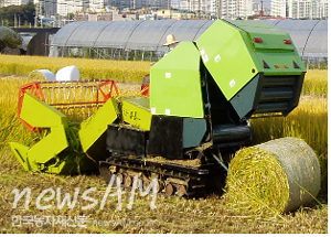 농촌진흥청은 최근 무른 논에서도 예취(자르는 작업), 집초(모으는 작업), 원형베일(원형으로 마는 작업)을 동시에 할 수 있는 ‘논 적응 자주식 사료작물 수확기’를 개발했다고 밝혔다. 이번에 개발한 수확기는 사료작물을 2m 10cm 폭으로 자른 뒤 체인바식 장치를 이용해 이송한 다음 롤 형태로 압축해 마는 과정을 한 번에 진행할 수 있다. 특히 무한궤도가 장착돼 있어 무른 논에서도 바퀴가 빠지지 않아 작업이 가능하다. 수확 대상 작물은 청보리, 조사료용 벼, 호밀 등이다. 이 수확기를 이용해 실제 논 사료작물을 수확한 결과, 작업시간은 6.7시간/ha으로 관행 대비 11% 절약할 수 있으며, 소요경비도 80만원/ha으로 관행 대비 12% 아끼는 효과를 보였다. 또한 수확손실을 관행 4.3% 보다 적은 2.5%로 1.8% 포인트 줄일 수 있고 작물을 논에 떨어뜨리지 않고 예취한 즉시 원형베일을 함으로써 흙 등 불순물이 섞일 염려가 없는 것이 큰 장점이다. 이와 함께 논 사료작물 수확을 위해 트랙터 부착용 예취기, 집초기, 원형베일러 등의 기계를 별도로 구입해야 하는 경제적 부담을 줄이고 각 작업이 끝날 때마다 기계를 바꿔 달아야하는 번거로움도 해소시켰다. 무한궤도를 장착함으로써 수확시 잦은 비로 논이 질척할 때 바퀴가 빠지는 문제를 해결해 적기 수확도 가능하다. 유병기 농진청 생산자동화기계과 연구사는 “조사료 자급률을 높이기 위해 논 사료작물을 중심으로 재배면적을 2010년 24만4,000ha에서 2015년 32만ha로 늘릴 계획”이라며 “이번에 개발한 ‘논 적응 자주식 사료작물 수확기’를 조만간 산업체 기술이전을 통해 농가에 보급할 계획”이라고 밝혔다. |