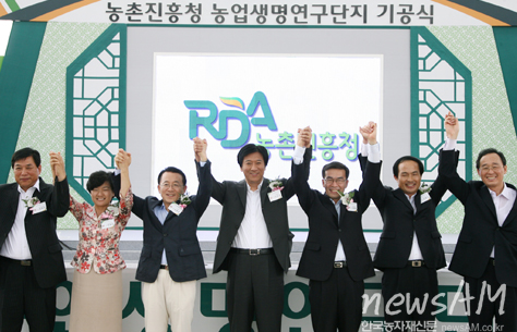 농진청은 오는 2014년 말까지 혁신도시 내 농업생명연구단지에 본청과 국립농업과학원, 국립식량과학원, 국립원예특작과학원, 국립축산과학원 등 산하 4개 기관을 일괄 이전하게 된다. 전북 혁신도시에 조성되는 농업생명연구단지는 우리나라 미래 농산업의 핵심거점으로, 전북 혁신도시 전체부지의 64%에 해당하는 630만9000㎡에 1조7893억원이 투입돼 141개동의 연구시설과 350만㎡의 시험연구포장이 조성된다. 농업생명연구단지는 2014년 12월 완공예정으로 이전이 완료되면 농업과학 기초기술, 식량 작물, 원예특용작물, 축산산업에 대한 연구·지도·교육의 중심기관으로서의 역할을 수행하게 된다. 특히 박사급 연구원 830여명을 포함한 정규직 1700여명과 3000여명의 연구보조원 등이 연구 및 지도업무를 수행하고 180여회의 국내행사와 국제행사가 개최돼 연간 4만명 이상이 찾아올 것으로 전망된다. 공공기관의 이전 청사는 에너지 효율 1등급 및 친환경 건축물 그린 1등급 인증을 통해 신재생 에너지를 10% 이상 사용하고 기존 건축물 대비 에너지 사용량을 40% 절감하는 에너지 절약형 녹색 청사로 건축된다. 이날 기공식에는 서규용 농림수산식품부장관, 민승규 농진청장, 한만희 국토해양부 제1차관, 김완주 전북도지사 및 지역주민 등 600여명이 참석했다. 민승규 농진청장은 이날 “농업생명연구단지를 농산업 혁신거점으로서 친환경 첨단 농업연구단지로 조성해 우리나라 농업발전의 새로운 전기를 마련할 것”이라면서 “전북도를 역사와 전통이 살아 숨 쉬는 농업생명의 허브로 발전시켜 나갈 것”이라고 말했다. 한만희 국토해양부 제1차관은 “금년 말까지 80개 공공기관의 청사착공을 추진하고 내년까지는 모든 혁신도시의 부지조성과 인프라를 구축하겠다”고 밝혀 공공기관의 지방이전의 본격화를 알렸다. |