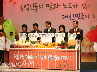 농업인의 날은 농업이 국민경제의 근간임을 국민들에게 인식시키고 농업인의 긍지와 자부심을 고취시키며 노고를 위로하기 위한 법정기념일로, 1996년부터 매년 11월11일로 정해 기념하고 있다. 올해 농업인의 날 행사는 농업인의 날 기념식, 전시·판매행사, 백설기 1111조각 퍼즐 구성 등 퍼포먼스, 체험·시식행사, 심포지엄 등으로 다양하게 꾸며졌다. 김준봉 행사추진위원회 공동대표(한국농업경영인중앙연합회장)는 이날 “한·미FTA 국회비준과 관련해 현실성 있는 농업지원 대책마련이 필요하다”며 “식량주권을 책임지며 농업을 핵심산업으로 육성키 위해선 국민적 공감대 형성을 모아야 하는 시기”라고 강조했다. 이준동 공동대표(대한양계협회장)는 “농업인의 날이 국민 모두가 함께하는 축제로 거듭나 농업에 새로운 혁신을 이루는 계기가 되길 바란다”고 밝혔다. 김황식 국무총리는 치사를 통해 “한·미 FTA국회 비준되면 우리 농업에 큰 위기가 될 것이라고 걱정하는 분들이 많다”며 “정부는 피해보전과 농업의 경쟁력 강화를 위해 22조 1000억원의 재원을 차질 없이 지원하고 있다”고 밝혔다. 우수 유공자 시상에서는 최고 영예인 금탑산업훈장은 새싹재배법과 친환경농장과 직영매장 운영 등으로 생산과 유통을 선도한 유근모(51)장안농장 대표가 수상했다. 또 동탑산업훈장을 수상한 한상헌 농기계조합 이사장을 비롯해 훈장 6명, 포장 8명, 대통령 표창 20명 등 총 130명에게 수상의 영예가 주어졌다. |