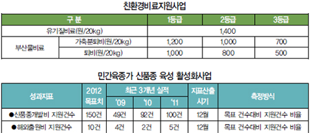 기대를 모았던 미생물농약과 천적 지원은 올해 사업에도 반영되지 않았으며, 내년도 사업반영도 불투명한 상황이다. 하지만 2012년 유기질비료에 대한 정부지원예산은 1350억원으로 지난해에 비해 100억원 늘어났으며, 지원물량도 270만톤으로 지난해에 비해 20만톤이 증가했다. 2013년에도 유기질비료에 대한 지원은 줄어들기보다는 늘어날 것으로 보이지만 맞춤형비료의 지원 중단이 예정돼 있어 화학비료산업은 앞으로 더 어려움을 겪을 전망이다. 여기다 농식품부는 투입재·시설장비·에너지 절감 보조사업 등을 단계적으로 폐지한다는 계획이다. 2014년부터 축산분뇨시설 지원, 비료계정 적자보전, 농기계 임대, 조사료 생산기반 확충 보조 사업을, 2015년 이후에는 시설원예 에너지 이용 효율화, 농산물 브랜드 육성, 물류 표준화, 녹비종자 대 보조 사업 폐지 등을 검토하고 있다. 이들 사업은 농산업과 직·간접으로 관련돼 농자재산업분야에도 적지 않은 영향을 미칠 것으로 보인다. 2012년 시행지침에서 변화된 점을 굳이 찾는 다면 종자산업 육성에 대한 지원이 강화된 것을 꼽을 수 있다. 특히 농업종합자금지원에 ‘우수기술 사업화 지원’이 신설됐다. 이 사업은 정부인증 우수 기술을 사업화하는 업체에 운영자금을 지원하는 것이 골자다. 또 농기계 임대사업에 고추·마늘 기계를 신규로 포함하고 2017년까지 고추·마늘 전용 임대사업소 38개소를 설치한다는 계획이다. 에너지효율화사업과 관련해 펠릿보일러 지원 대상 제품의 품질을 강화했다. ‘신재생에너지 설비 인증에 관한 규정’에 따른 인증제품 등 산림청 보급대상 보일러 등록제품에 한해 설치가 가능해졌다. |