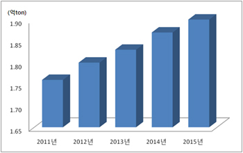 전 세계 비료 수요는 현재 연간 약 1억8000만톤에 달하지만 연간 2~3%의 속도로 매년 증가하고 있다. 이는 현재 70억 명 수준의 전 세계 인구가 중동·아프리카 등 인구 증가에 따라 2050년까지 90억 명으로 늘어날 것으로 전망돼 향후 비료 수요도 지속적으로 늘어날 것으로 예상되고 있다. 비료 수요가 늘어난 것과 달리 비료생산을 위한 인광석 공급 국가는 한정돼 있어 비료 원료 확보를 위한 세계 각국의 경쟁이 치열하게 전개될 전망이다. 현재 인광석은 중국에서의 산출량이 31.5 %로 1위를 차지하고 있으며, 미국이 2위로 18.8%, 모로코가 15.5%로 3위로 대부분을 차지하고 이어 러시아, 튀니지 등이 각각 6.5%, 5% 수준이다. |