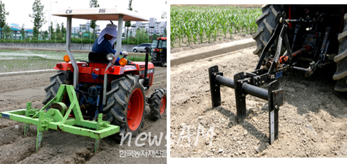 특히 기존의 작업기가 작동에 많은 힘이 요구됐던 것과 달리 진동형으로 적은 마력(25마력 수준)의 소형 트랙터로도 작업이 가능한 트랙터 부착용 심토파쇄기를 선보였다. 농촌진흥청에 따르면 논을 밭으로 전환한 첫해에 옥수수 수량을 늘리기 위한 심토파쇄 기술과 적정 재식밀도를 찾아냈다. 이 기술은 논에 옥수수를 처음 재배할 때부터 수량을 높일 수 있는 기술로 땅속 30∼40cm 깊이까지 토양을 파쇄해 물리성을 좋게 함으로써 옥수수 수량을 24 %나 높일 수 있다. 또 논에서 심토파쇄 후 옥수수를 재배할 때 쓰러짐을 방지하기 위한 적정 재식밀도는 ha 당 5만5000∼6만6000주인 것으로 나타났다. 트랙터 부착용 심토파쇄기의 가격도 저렴해 농가에 경제적 부담을 줄이면서 확대 보급할 수 있는 장점도 있다. 특히 이 심토파쇄기는 옥수수뿐만 아니라 보리, 콩, 잡곡, 뿌리채소 등 다른 작물을 논에 재배할 때도 수확량은 물론 품질을 향상시킬 수 있는 효과적인 장비이다. 권영업 농진청 전작과장은 “이번에 개발한 논의 심토파쇄와 재배기술을 농가에 조기 보급하면 사료용 옥수수의 논 재배면적을 늘려 사료의 자급률 향상에 크게 기여할 것이다”라고 말했다. |