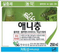 IPM방제 적합한 나방 전문 약제 ‘애니충’액상수화제 세계 최초 해충 근육수축제다. 나방전문 살충제로 나방의 근육을 수축시키는 독특한 작용기작을 가지고 있다. 또한 나비목 유충이 살포된 작물을 조금만 가해해도 섭식을 중단하므로 가해 흔적이 적어 보다 깨끗한 고품질 안전농산물을 생산할 수 있다. 또한 유용곤충 ․ 천적에 대한 영향이 적고 꿀벌, 머리뿔가위벌 등 화분수정을 돕는 방화곤충에 매우 안전하여 IPM방제에 적합하다. 살포 후 약효가 15일 이상 지속되어 약제 살포횟수 및 노동력을 절감시켜 큰 경제적 이득을 볼 수 있으며 기존 약제에 저항성을 나타내는 해충에도 우수한 약효를 나타낸다. |