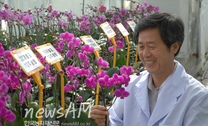 일부 농가에서 가격이 높은 가을철에 팔레놉시스를 생산하기 위해 저온처리 및 고랭지재배 등을 했으나 재배기술이 정립되지 않아 품질이 떨어지고 출하시기 조절 등에 어려움이 많았다. 이에 충북농업기술원은 저온처리 방법과 처리시기, 적품종 선발 등으로 분화가격이 높은 9~10월까지 자연개화기 때와 같은 수준으로 품질을 향상시킨 것이다. 품종은 만천홍과 웨딩품종을 선발했고, 22개월 된 적합품종을 이용해 5월 상순부터 7월 중순까지 낮 25℃, 밤 18℃로 맞춰 12주간 저온처리 후 일반온실에서 재배한 결과 9~10월중에 꽃피는 길이 50~53cm, 꽃수 30~31개로 개화시키는데 성공했다. 팔레놉시스 자연개화기는 1월부터 3월까지 주로 이루어지고 있으나 이 시기에는 출하량이 많아 낮은 가격에 거래가 이루어지고 있는 실정이다. 충청북도농업기술원 이종원 농학박사는 “이번에 개발한 기술을 농가에 보급하여 품질이 향상된 팔레놉시스를 가격이 높은 9, 10월중에 출하하여 화훼농가가 소득을 높일 수 있도록 할 계획”이라고 밝혔다. |