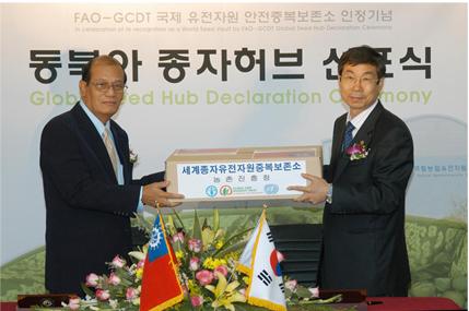 농촌진흥청 농업유전자원센터가 지난 8월 14일 세계주요 유전자원을 보존하는 ‘국제안전중복보존소’ 로 지정됐다. 이는 세계 각국의 종자를 보관하는 ‘세계 종자은행’ 으로 발 돋음 한 것을 의미한다. 세계식량농업기구(FAO) 세계작물다양성재단으로부터 농업유전자원센타가 ‘국제안전중복보존소’ 로 지정 받은 것은 세계적인 규모의 첨단 무인자동화 종자보존시설로 종자 50만점을 100년간 보존할 수 있음을 인정받은 결과다. 세계작물다양성재단은 지난 2월 노르웨이 스발바드섬에 국제씨앗 저장고(일병 노아의 방주)를 설립해 세계적으로 중요한 종자들을 한곳에 모아 안전하게 보존하는 사업을 추진해 오고 있다. 국내에도 이곳에 토종종자 1만3000여점을 보존키로 하고 6월에 우선 5000점을 입고했다.농촌진흥청은 10월 31일 국제 종자안전중복 보존소 지정과 미얀마 종자기탁을 기념해 동북아 종자허브 선포식을 농업유전자원센터에서 가졌다. 미얀마의 유전자원 기탁은 국립농업유전자원센터가 국제종자안전중복보존소로 지정된 이후 처음이다. 미얀마농업연구청은 1000점 기탁의사를 밝히고 이날 기념식에서 200점을 입고했다. |