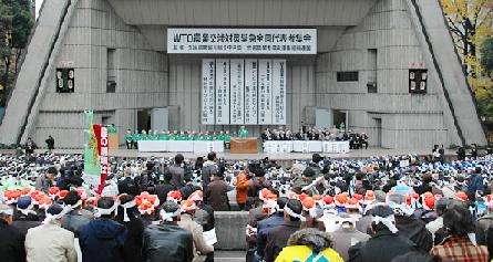 쿄도 치요다구)에 전국 대표자 3000명 이상이 모여 긴급 집회를 열었다. 모기 마모루 JA전농 회장은 이날 “지난 7월 이후 진전이 없었던 WTO 농업 교섭이 연내 합의로 의견이 모아지고 있는 것은 브라질과 오스트레일리아 등 수출국의 의향을 반영한 것” 이라며 “중요 품목 8%를 지키지 않으면 농촌은 대혼란하고, 미래의 농업 생산은 할 수 없게 된다” 고 지적했다. 이날 대표자들은 상한 관세를 단호히 저지하고 다양한 농업의 공존에 필요한 충분한 수의 중요 품목의 설정, 비관세 할당 품목의 중요 품목에의 지정의 확보, 일본 농업의 지속적 발전을 가능하게 하는 관세 할당의 설정, 수입급증에 대처하는 특별 세이프가드(SSG)의 견지 등 5개항을 결의했다. |