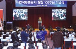 농촌공사는 1908년 옥구 서부수리조합 설립 이후 100년간을 농업인의 곁을 지키며 우리 농업·농촌의발전을 위해 힘써왔다. 이날 기념식에서는 또 지난 1세기 동안의 역사를 한눈으로 볼 수 있는 ‘100주년 사진전’ , ‘100년사 봉정식’ 도 함께 마련됐다. 홍문표 농촌공사 사장은 인사말을 통해“농어촌에 희망주고, 국민에게 신뢰받는 일등 공기업으로서 새로운 미래 100년의 희망을 쌓아 나가겠다”고 밝혔다. 이날 기념식에는 장태평 농림수산식품부장관, 이낙연 국회 농림수산식품위 위원장, 정몽준 한나라당 최고의원 등 각계 인사 500여명이 참석했다. |