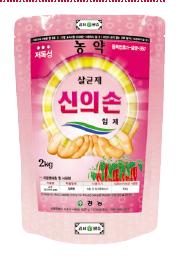 고추 잘록병 방제 전문약제 고추 잘록병 방제에 효과가 우수한 ‘신의손’ 입제는 토양혼화처리 약제로서 균사생육 및 발아관 형성을 저해하여 잘록병의 근본적인 원인을 제거해준다. 또 신속한 침투이행성으로 내우성이 강하고, 약효가 장시간 지속되며, 안전하다. 작물의 엽초부, 근부로부터 신속하게 흡수 이행해 효과를 발휘하며, 처리횟수와 살포량을 절감할 수 있어 수질오염 등을 최소화하는 제품이다. 파종 전 1회 토양 전면 혼화 처리로 잔효성이 길어 오랫동안 효과가 지속된다. [경농]- "뉴그린 수화제·유제" |