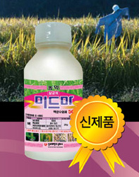 고추 탄저병에 우수한 상승효과를 발현하는 ‘세이퍼’ 액상수화제는 식물표면과 밀랍 층에 강하게 결합하여 내우성이 우수하고 약효 지속기간이 길어 약효 발현이 안정적이다. 살포 후 약액이 묻지 않은 발병부위에도 재분배 및 침달효과로 약효가 우수하며, 병원균 생활사의 각기 다른 단계에 작용하므로 저항성 발현의 우려가 적다. 사용적기에 소량의 약을 물에 잘 희석한 후 약액이 충분히 묻도록 골고루 뿌려주면 효과가 탁월하다. [성보화학] - 미드마 액상수화제 |