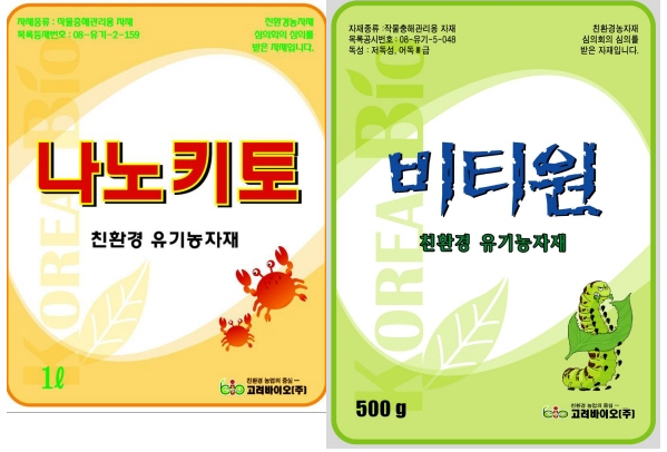 ‘비티원’은 작물충해관리용 친환경유기농자재(목록등재번호 : 08-유기-5-048)로 나비목(유충)방제 전문 제품으로 약효지속기간이 길다. 특히 Bacillus thuringiensis를 이용한 미생물제제로 적용대상 범위가 넓은 것이 특징이다. 이 제품은 해충 발생초기에 사용할 경우 효과적이며, 발생밀도가 높을 경우에는 5일 간격으로 2~3회 연속 살포하면 된다. 원예와 과수 등 작물생육용 친환경유기농자재(목록등재번호 : 08-유기-2-159)인 ‘나토키토’는 수확기 직전까지 사용가능하다. 키토산 함량(글루코사민 총량)이 높은 고순도·고농축 제품으로 흡수 이용률이 빠른 것이 특징이다. 엽면시비 및 토양 관주를 통해 작물체의 뿌리 발육 및 발아율을 향상시킨다. 15일 간격으로 3~4회 경엽 및 관주처리하고 작물 생육 상태 및 환경에 따라 사용량 및 사용 횟수를 조정한다. 일교차가 크거나 큰비가 온 후에도 수세회복을 위해 1~2회 정도 처리하면 좋다. |