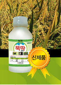 [성보화학] ◇뚝딱 유제 새로운 수도해충 방제 전문약 ‘뚝딱’ 유제는 벼에 발생하는 먹노린재, 벼멸구, 혹명나방을 한번 처리로 동시에 방제할 수 있는 논 해충방제 전문약제이다. IGR(곤충생장조절)계통인 크로마페노자이드와 클로로니코티닐계인 클로티아니딘의 혼합제로 흡즙성 해충과 나비목 유충의 동시방제가 가능하다. 또 침투이행성약제와 곤충생장조절제 성분을 혼합해 다른 계통 약제에 |